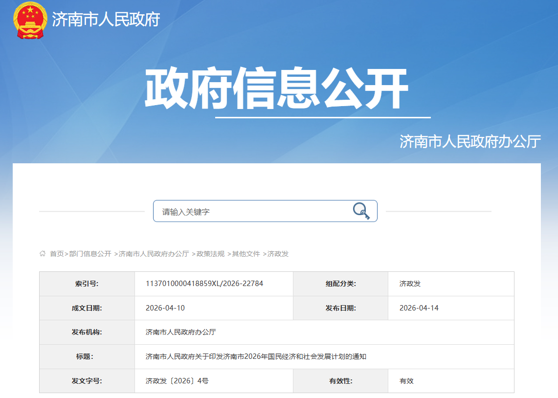 濟(jì)南市發(fā)布2026年國(guó)民經(jīng)濟(jì)和社會(huì)發(fā)展計(jì)劃
